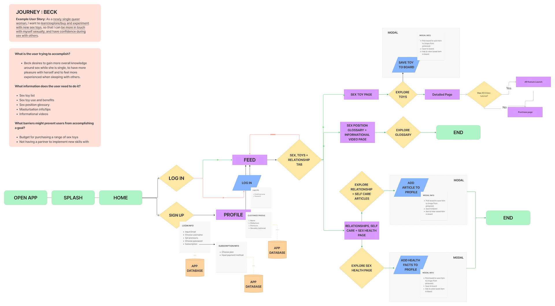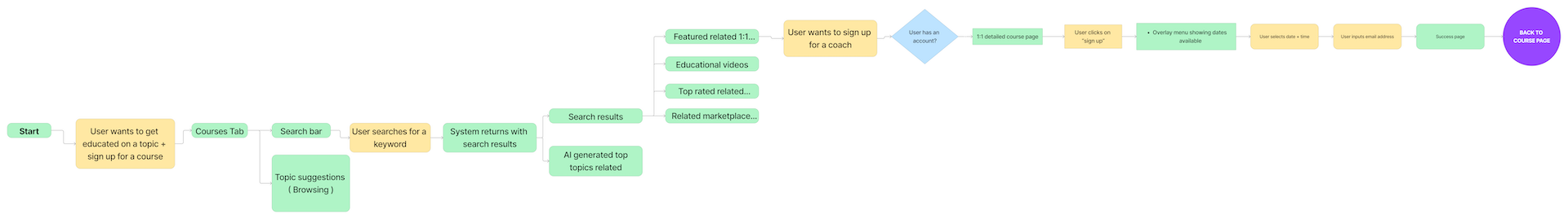It’s all about the journey, so after redefining my goals I began to dive into user flows to reveal the minimal viable product (MVP). This MVP included :