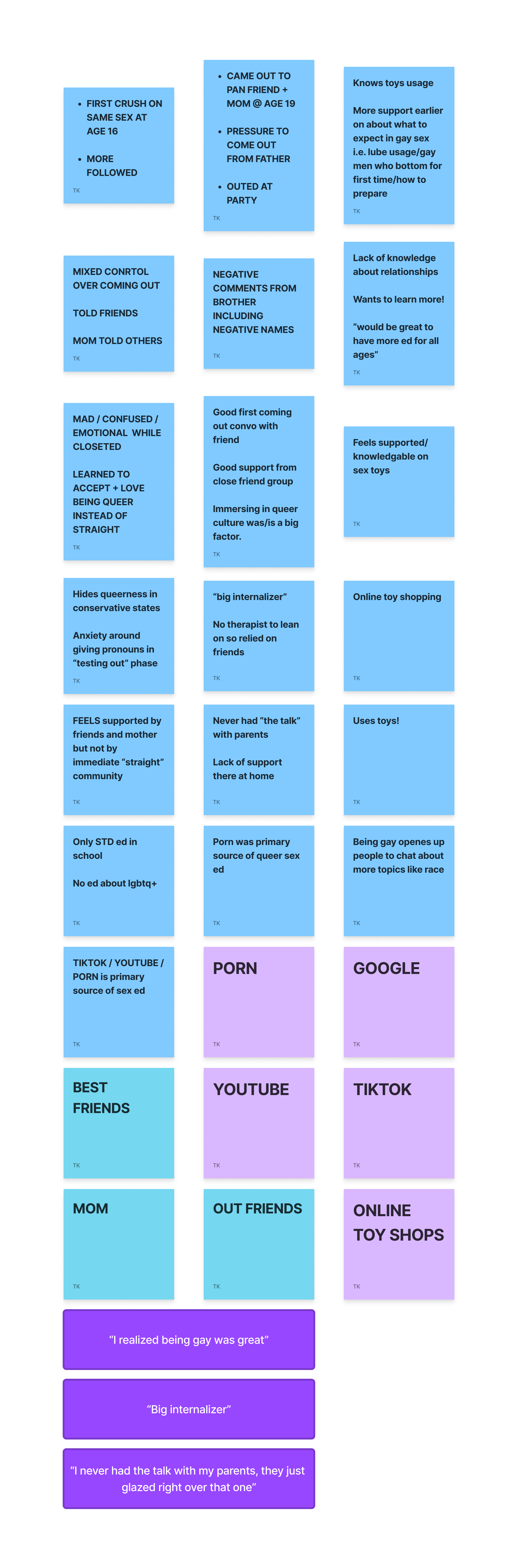 Understanding what questions, curiosities, and lack of knowledge is missing in queer sex ed showed a more clear picture of where our current system is failing a vulnerable population. This research provided a direction on how specifically to fulfill that need, and to what extent we need to be empowering more queer youth, adults and people close to them with proper knowledge.